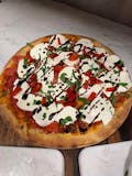 Crispy crust with ripe hand-crusted san marzano tomato, fresh garlic, oregano & fresh mozzarella.